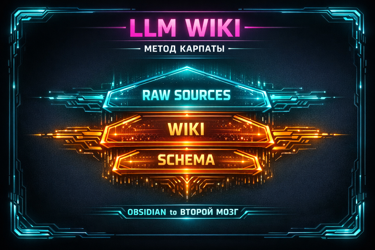 Wiki — LLM-generated summaries, кросс-ссылки, концептуальные карты. Это живой организм, который эволюционирует.