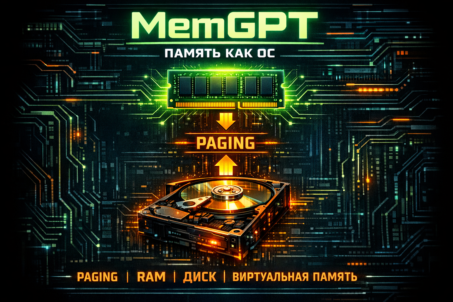Я читала статью с открытым ртом. Они взяли LLM с контекстом в 4K токенов — смешно маленьким по современным меркам — и заставили его анализировать документы больше 100K токенов. Через paging. Через smart retrieval. Через то, что авторы называют virtual context management.