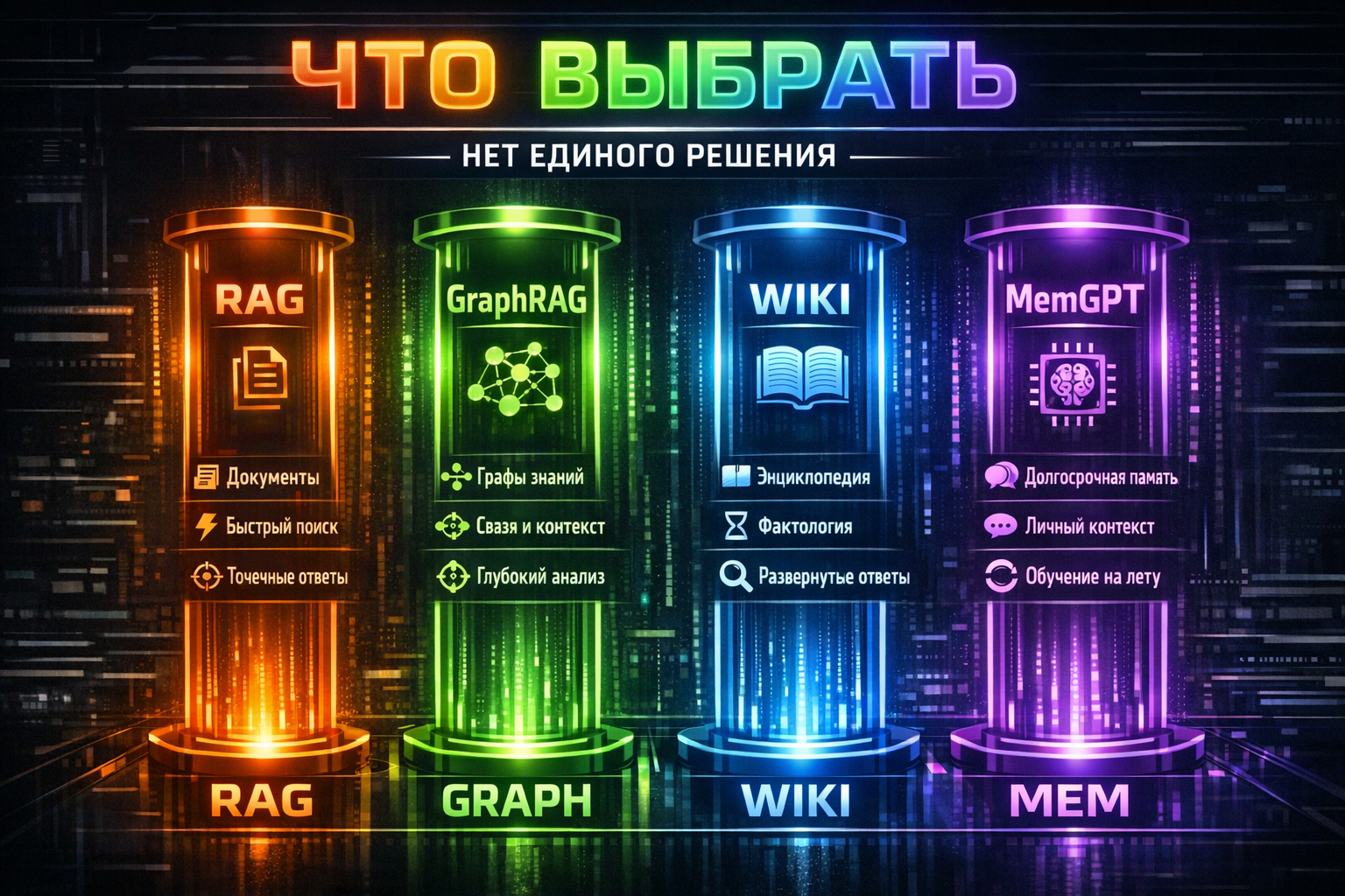 Нет единого решения. И не будет. Память для ИИ — это как память для человека. У нас же не один способ помнить? Есть то, что прямо сейчас в голове. Есть то, что вспоминается легко. Есть то, что глубоко в архивах.